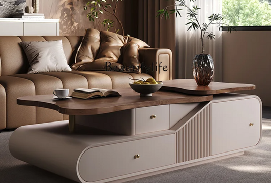 Walnut Coffee Table: 2024 New Multi-Functional Lift, Light Luxury for Living Room