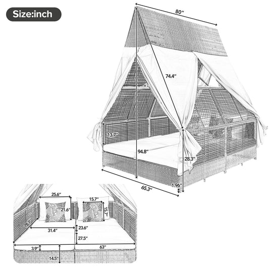 Outdoor Daybed Patio Lounge Bed, Adjustable Backrest