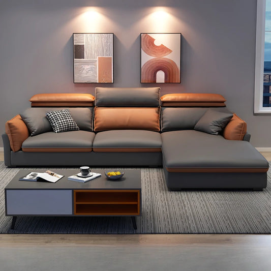 Modern L-Shaped Bonded Leather Sofa with Lounge – 2-Seat, 1-Arm
