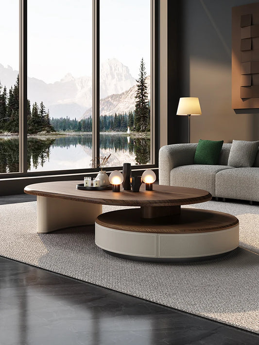 Retro Luxury Tea Table: Retractable, Round, Modern Minimalist, High-End, Fashionable Design