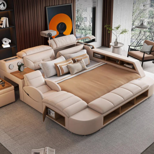 Multifunctional Tatami Bed - Modern Leather with Storage & Massage
