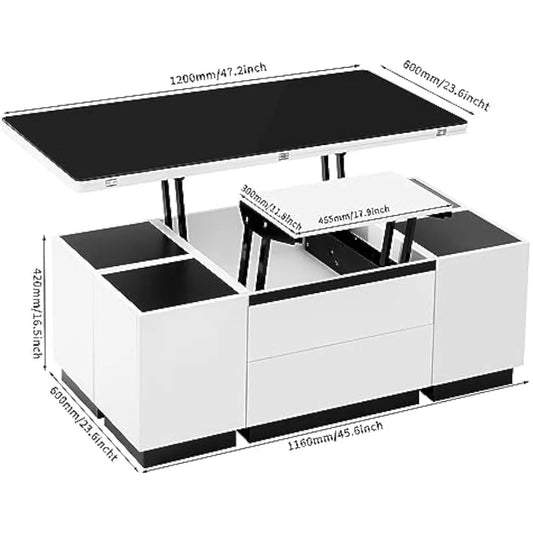 Modern 3-in-1 Lift Top Coffee Table: 4 Storage Stools, Living Room Furniture