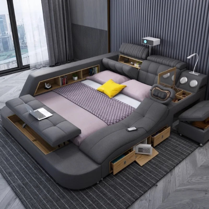 The bed’s multifunctional design includes integrated storage solutions, making it ideal for optimizing space. Spacious drawers are built into the base, allowing you to store linens, clothing, and other essentials discreetly. This thoughtful feature helps maintain a clutter-free environment while enhancing the bed's practicality.
