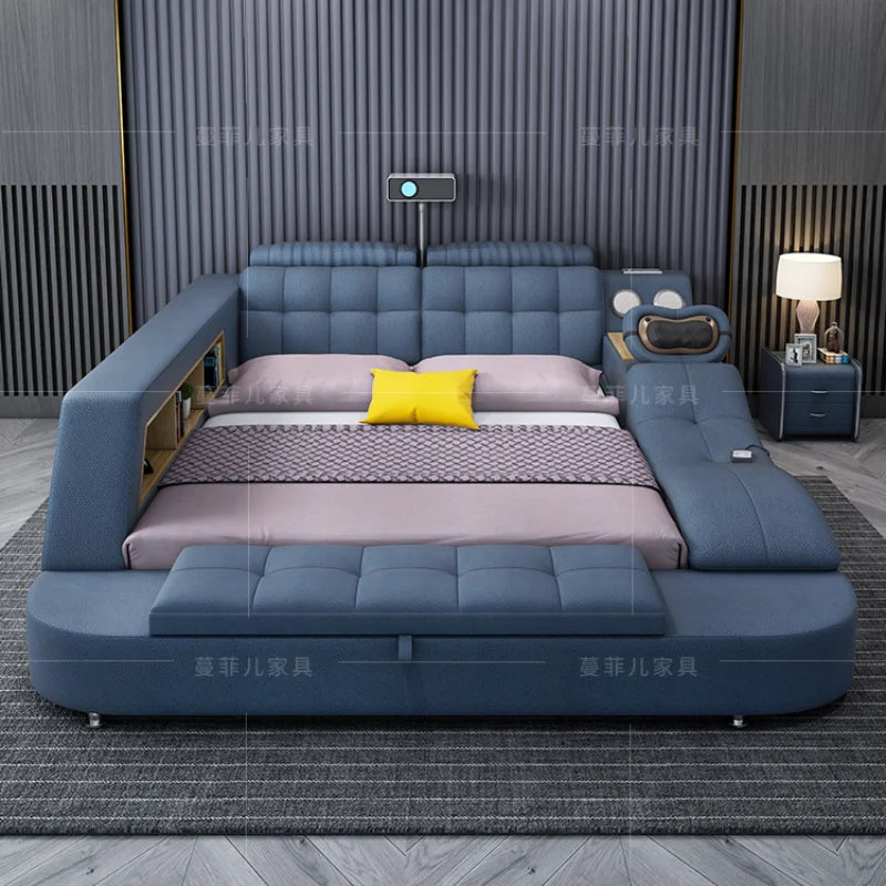 King Size Luxury Double Bed: Wooden Nordic Frame, Multifunctional