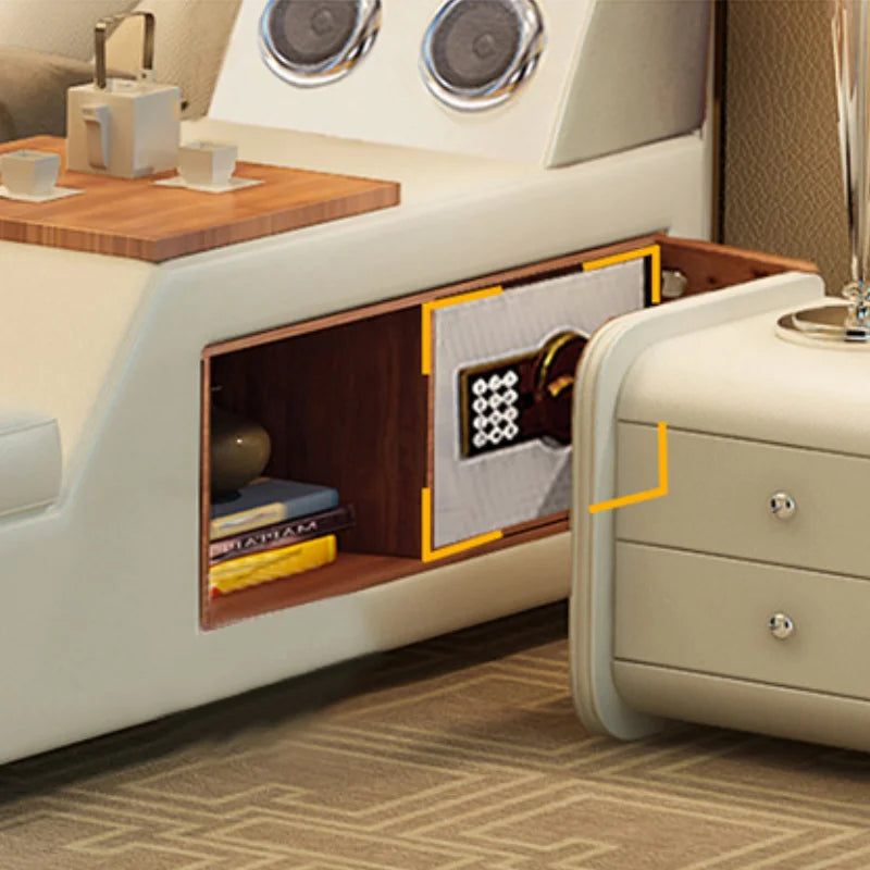 The bed’s luxurious leather finish adds a regal touch to any bedroom, while the European design elements ensure it complements various interior styles. The frame includes integrated storage solutions, perfect for organizing bedroom essentials and maintaining a clutter-free space. The included comferter offers exceptional comfort, making this bed a centerpiece of relaxation and luxury.