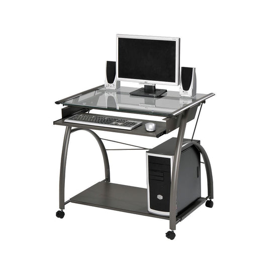 L-Shaped Tempered Glass Top Computer Desk, Pull Out Keyboard Panel