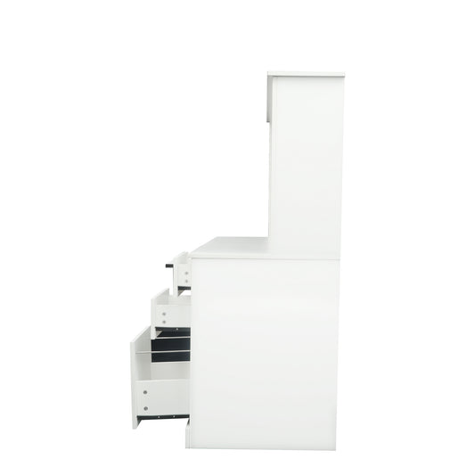 Home Office Computer Desk with Hutch, Antiqued White finish