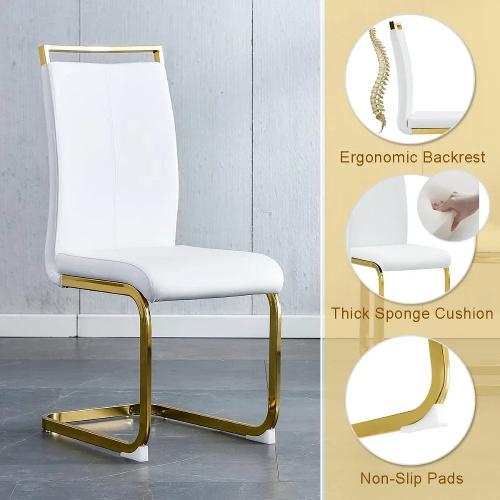 Premium PU Leather Upholstery: The chairs are covered in high-quality white PU leather, known for its elegance and ease of cleaning. The upholstery adds a touch of luxury while providing a comfortable seating experience.