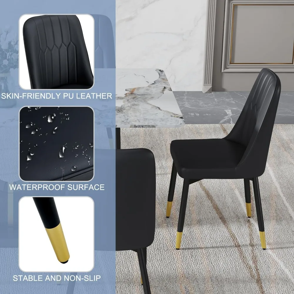 Easy Maintenance: The marble tabletop and glass accents are easy to clean and maintain, allowing you to keep the table looking pristine with minimal effort. The PU leather chairs are also designed for easy upkeep.