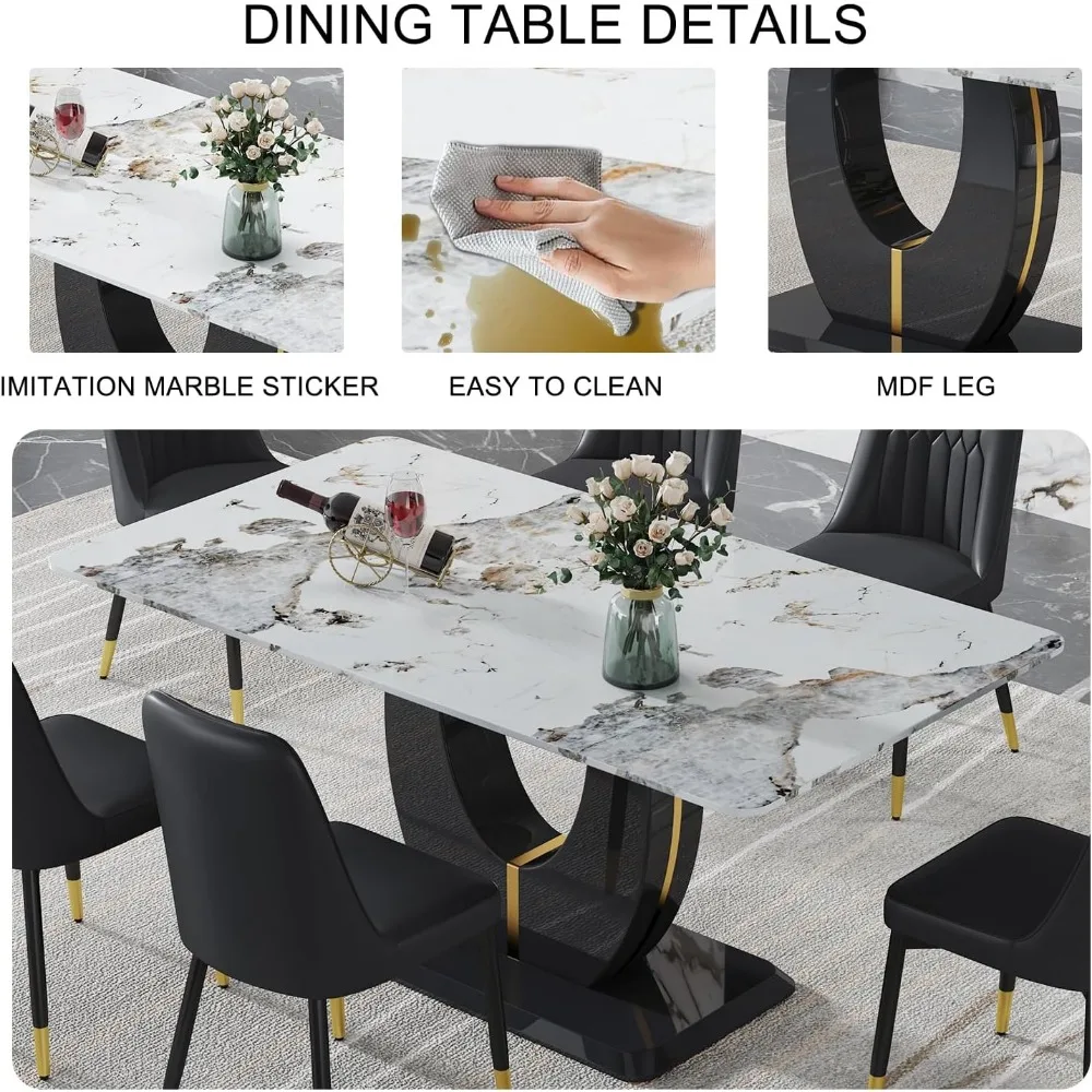 Introducing the Dining Table Set for 6, a sophisticated combination of modern elegance and practical functionality. This set features a striking white marble dining table paired with six black PU leather upholstered chairs, blending luxurious design with everyday convenience. Perfect for contemporary dining rooms and kitchens, this set provides both style and comfort for your dining experience.