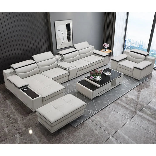 Genuine Leather Smart Home Sofa Set for Modern Living Rooms
