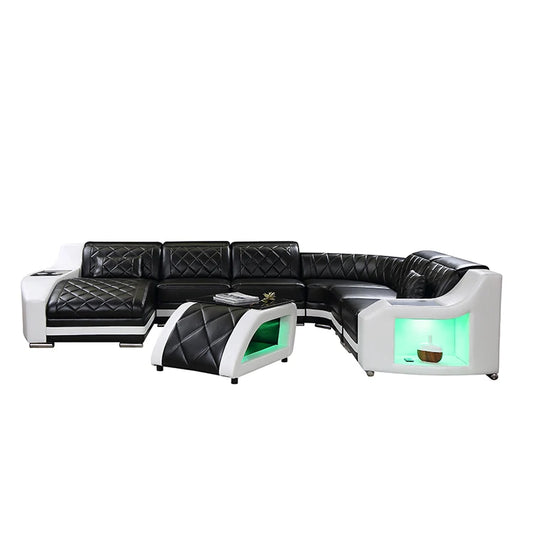 Modern L-Shape Genuine Leather Modular Corner Sofa with LED Lights