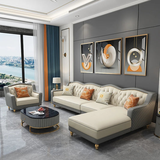 Italian Light Luxury Leather Sofa - Elegant Modern Design
