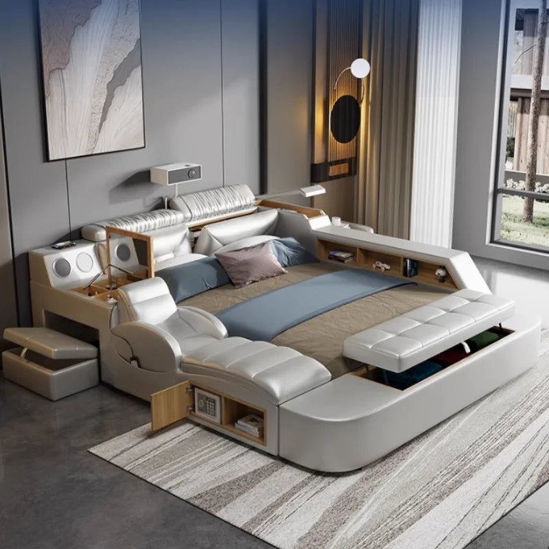 Contact Leather Double Bed: King Size, Luxury Storage, Modern