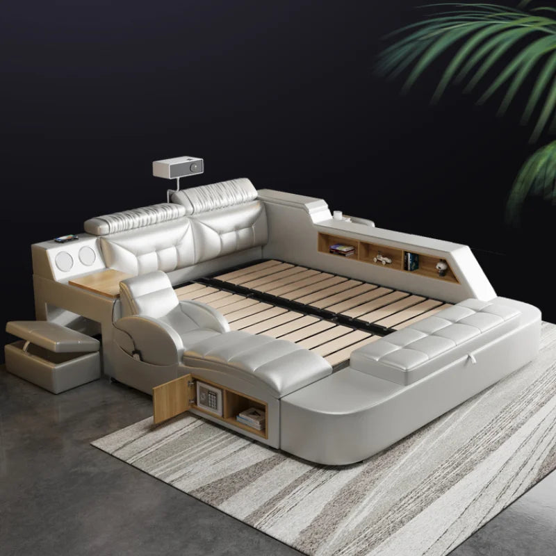 The bed is not only about aesthetics but also about providing a multifunctional solution for your bedroom needs. It comes with built-in storage, offering ample space to keep your belongings organized and your room clutter-free. The storage compartments are cleverly integrated into the bed’s design, ensuring that they are both accessible and discreet.