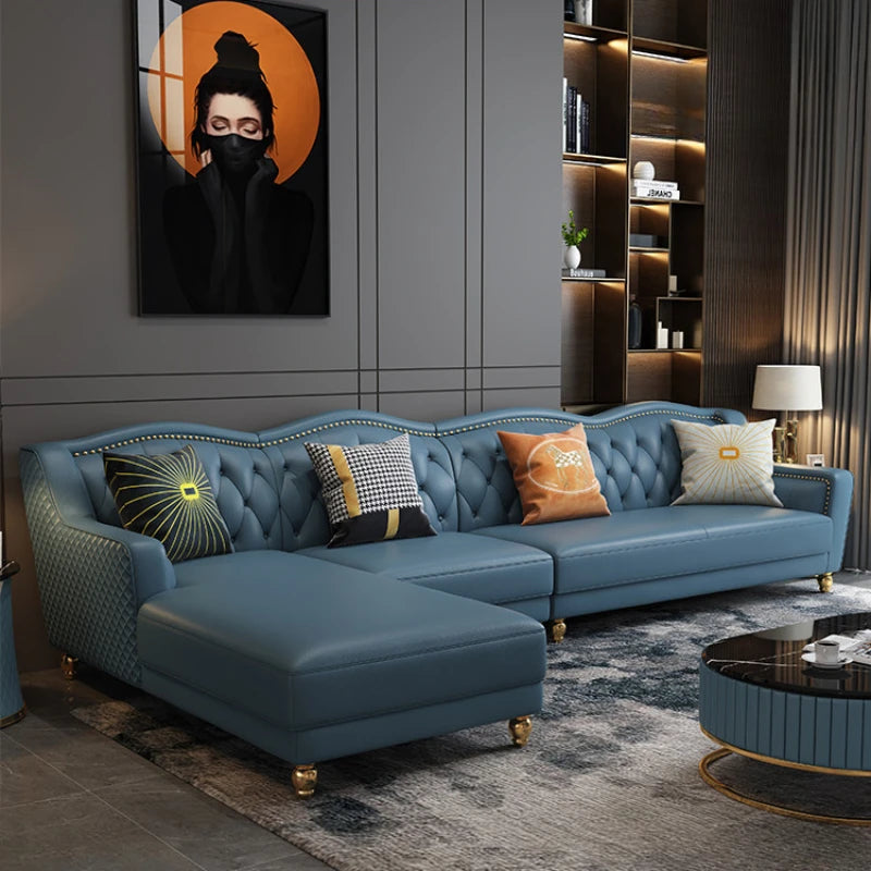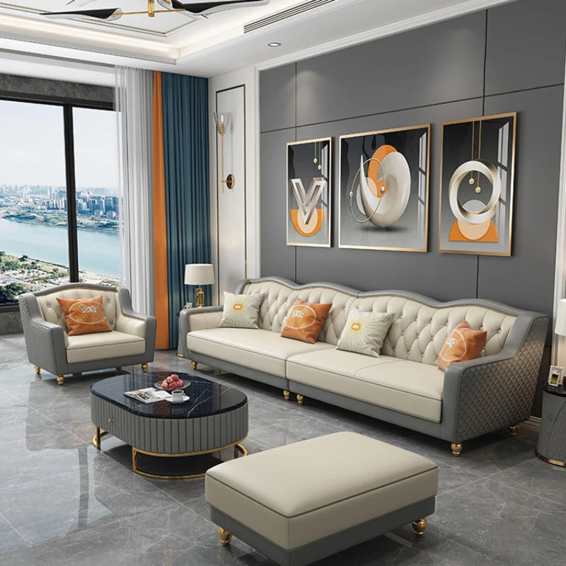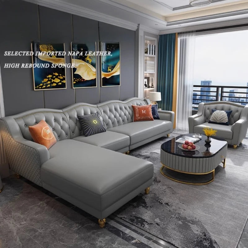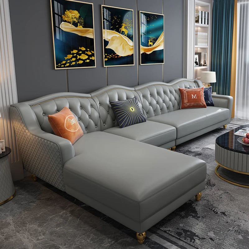 Elevate your living space with the Genuine Leather Sofa Chair, a masterpiece of modern design and luxury. This sectional corner sofa combines sophisticated style with exceptional comfort, making it a perfect addition to any contemporary living room. Upholstered in premium genuine leather, it exudes elegance and offers durability that lasts. The unique design features sleek lines and plush seating, ideal for both relaxation and socializing. Its versatile corner configuration ensures it fits seamlessly into various room layouts, enhancing the aesthetic appeal and functionality of your home.