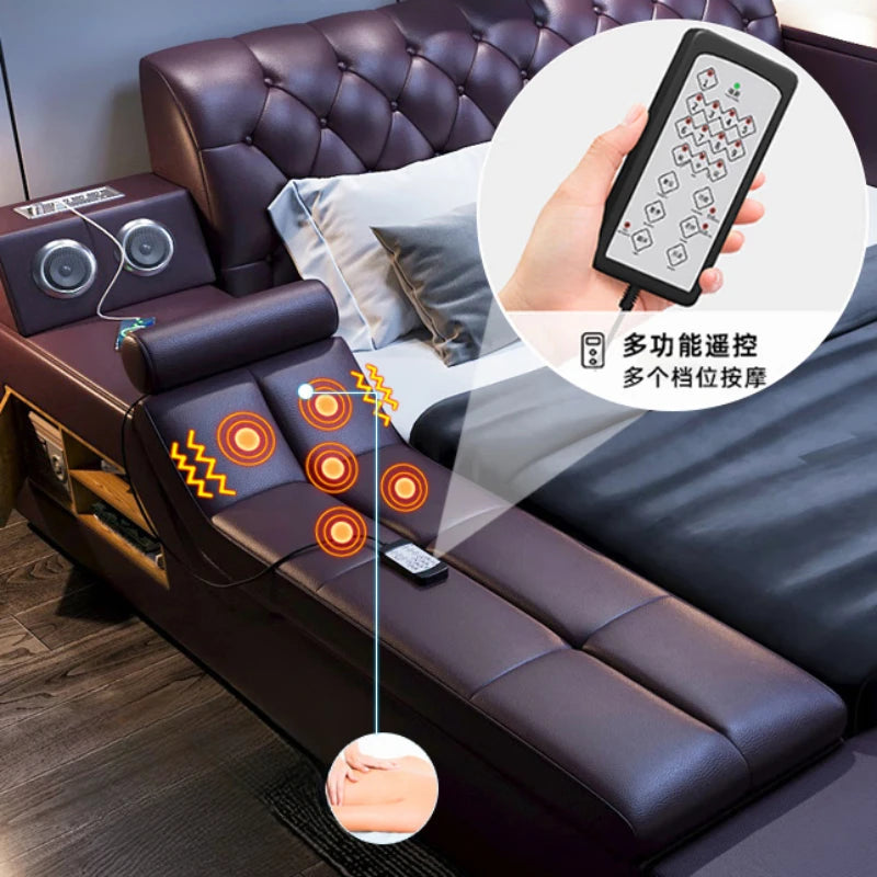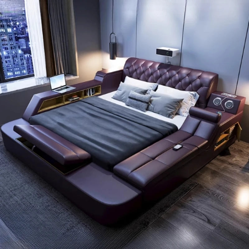 Nordic European Queen Bed - Headboard Storage, Modern Design