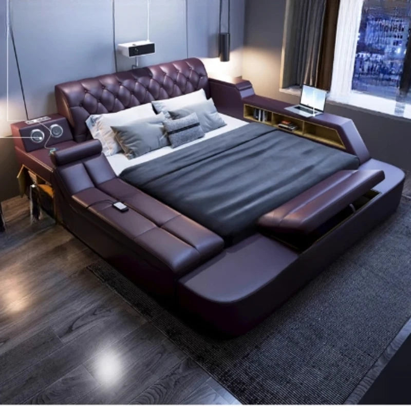 Enhance your bedroom with the sophisticated elegance of this Nordic European Queen Bed, featuring a multifunctional headboard with built-in storage. This modern Letto Matrimoniale bed frame combines European craftsmanship with contemporary design, making it a perfect addition to any stylish bedroom.