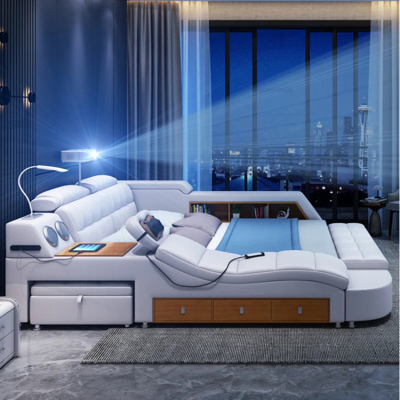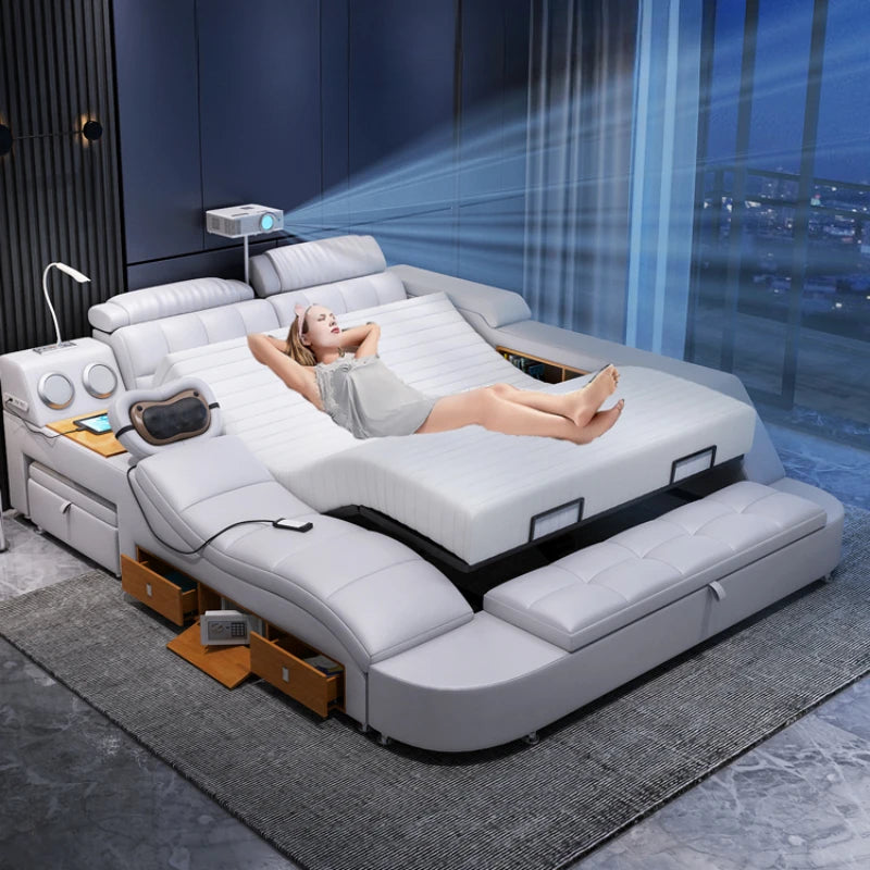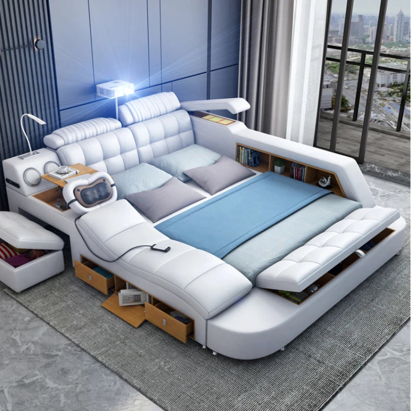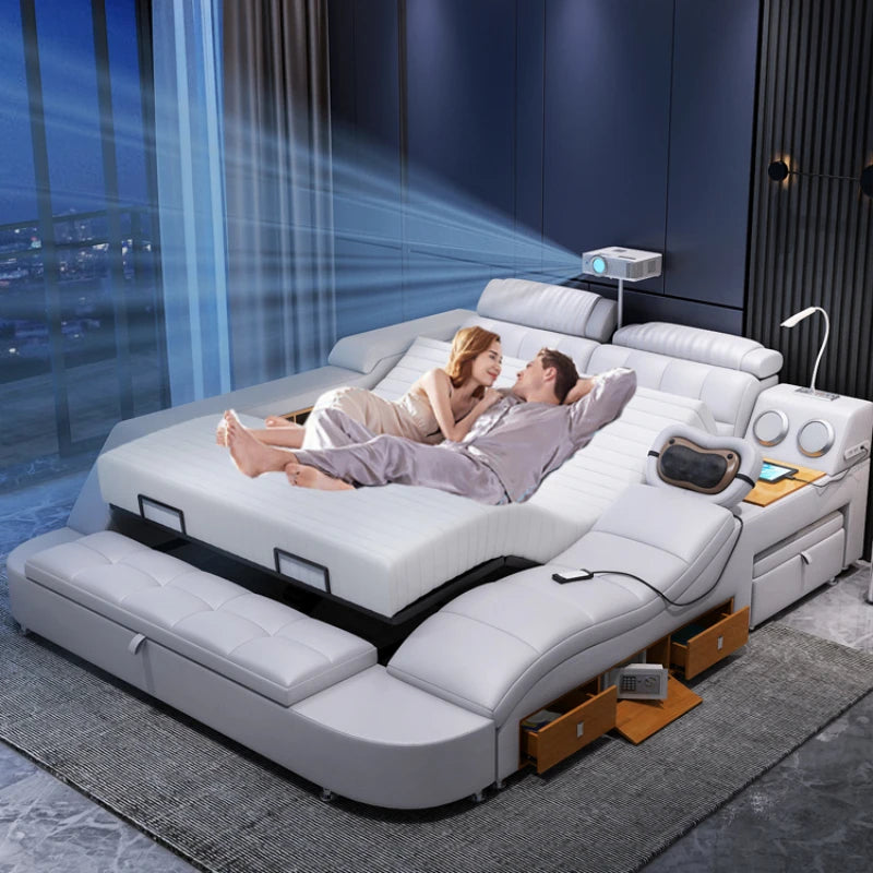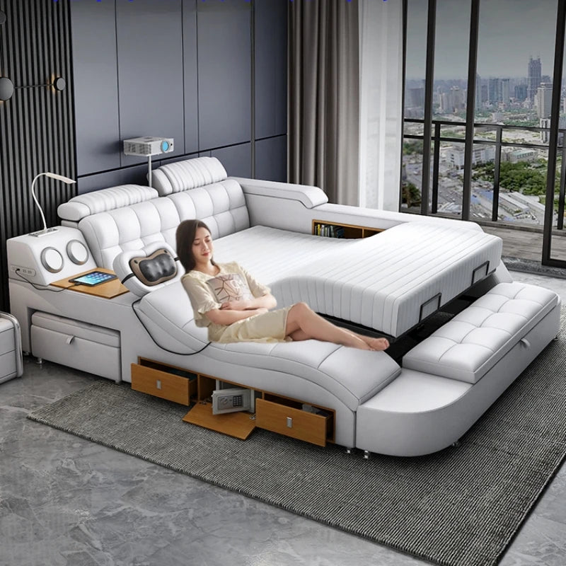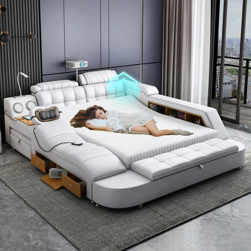 King Size Luxury Leather Bed - Modern Massager, Villa Set