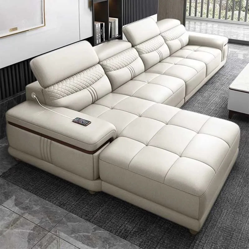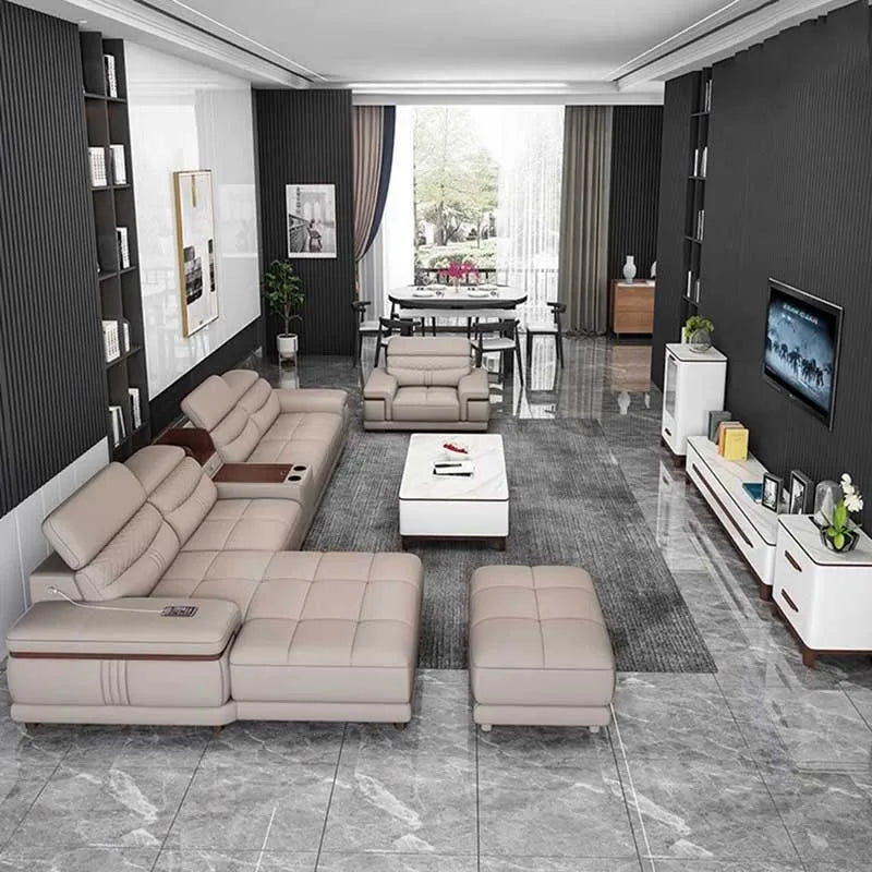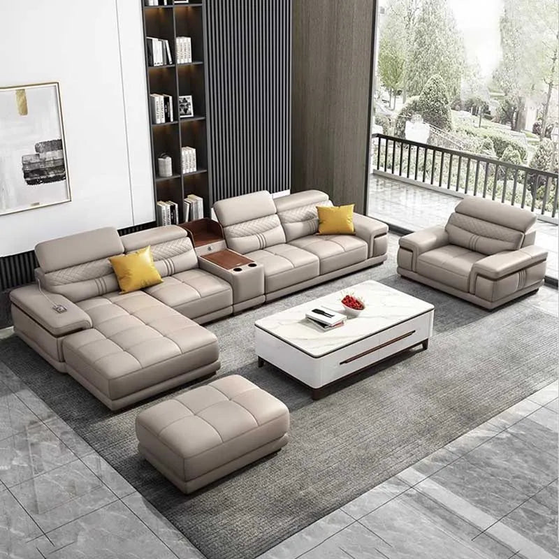The Nordic Leather Living Room Sofas come with puffs that add versatility to your seating arrangement. These puffs can be used as additional seating or footrests, enhancing the functionality of your living space. The leather upholstery is easy to maintain and adds a touch of elegance, making these sofas both practical and stylish.