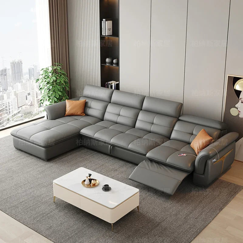 Transform your living space with the Luxury Genuine Leather Sofa, a perfect blend of modern design and comfort. This sectional sofa offers both a recliner feature and designer aesthetics, making it an exceptional addition to any contemporary home.