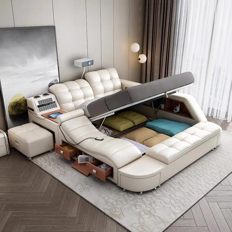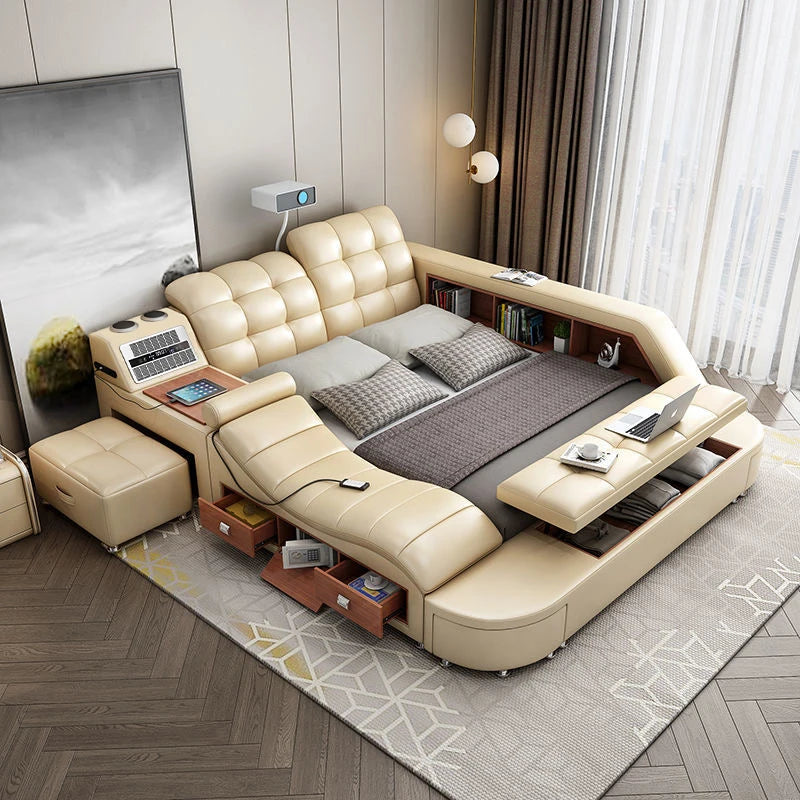 Luxury Smart Bed: Genuine Leather, Massage, Bluetooth, Air Cleaner