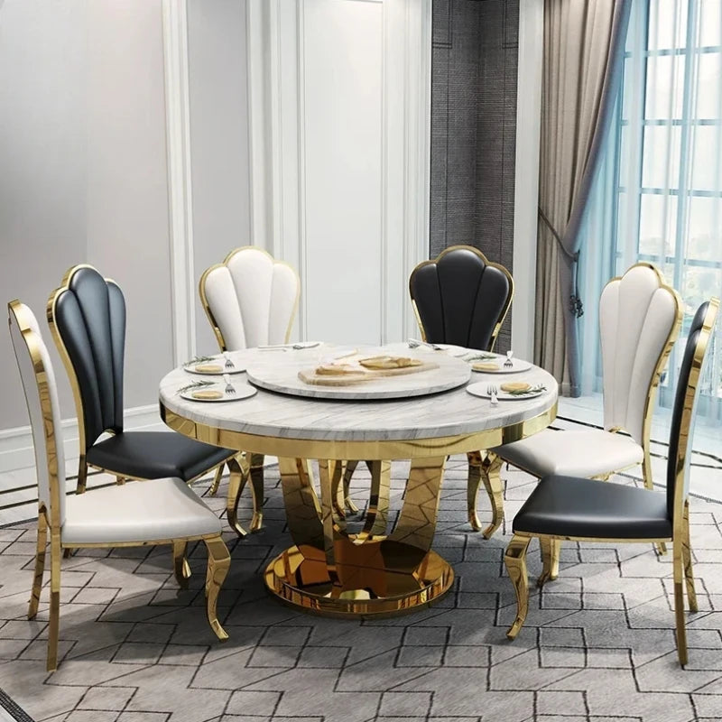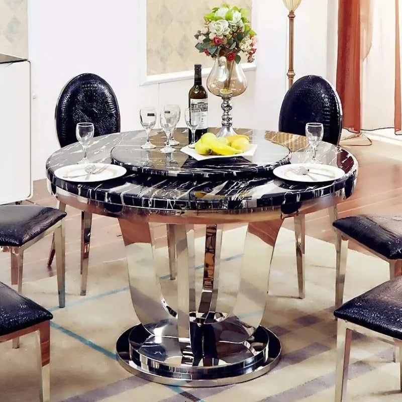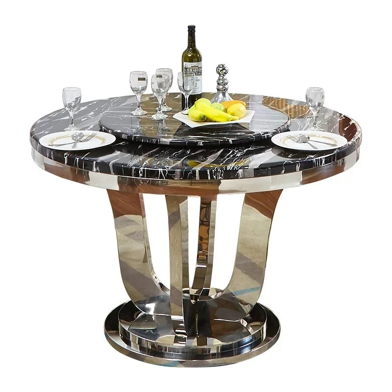 Enhance your dining experience with the Luxury Stainless Steel Dining Table, a sophisticated piece that embodies Italian grace and modern elegance. Perfect for upscale restaurants or stylish kitchens, this round table features a graceful turntable organizer and a sleek white finish, making it a stunning centerpiece for any dining area.