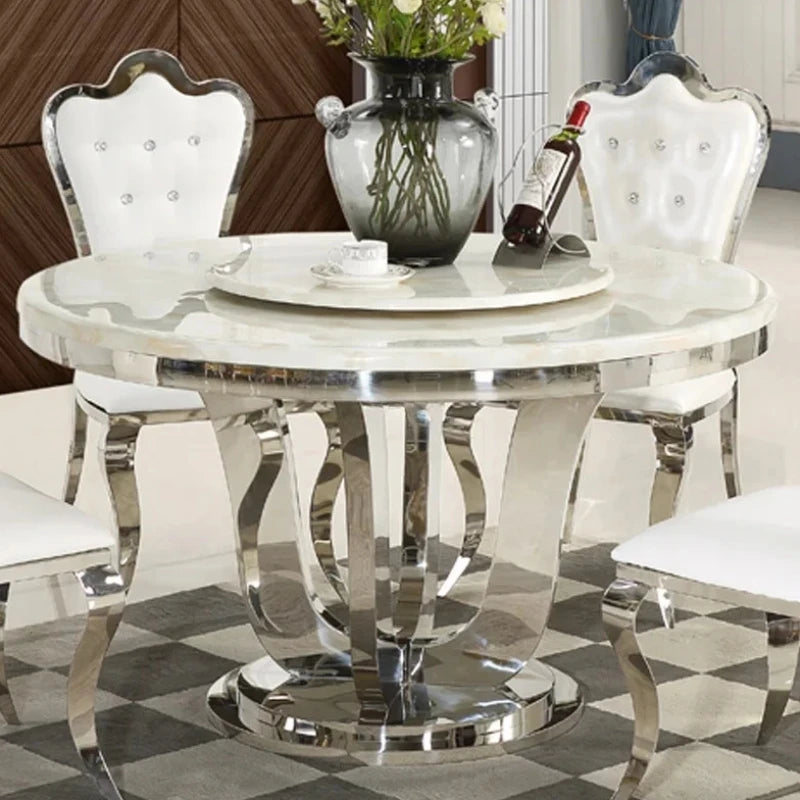 Luxury Stainless Steel Dining Table: Italian, Graceful Turntable, Round, White Kitchen Furniture