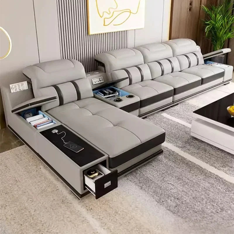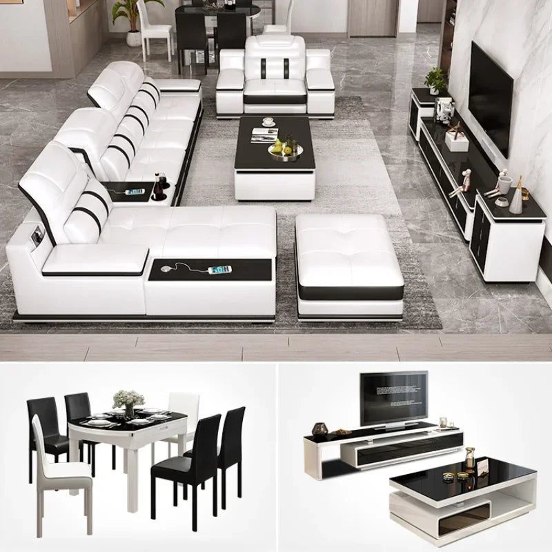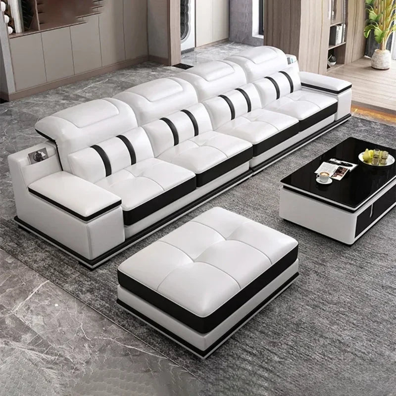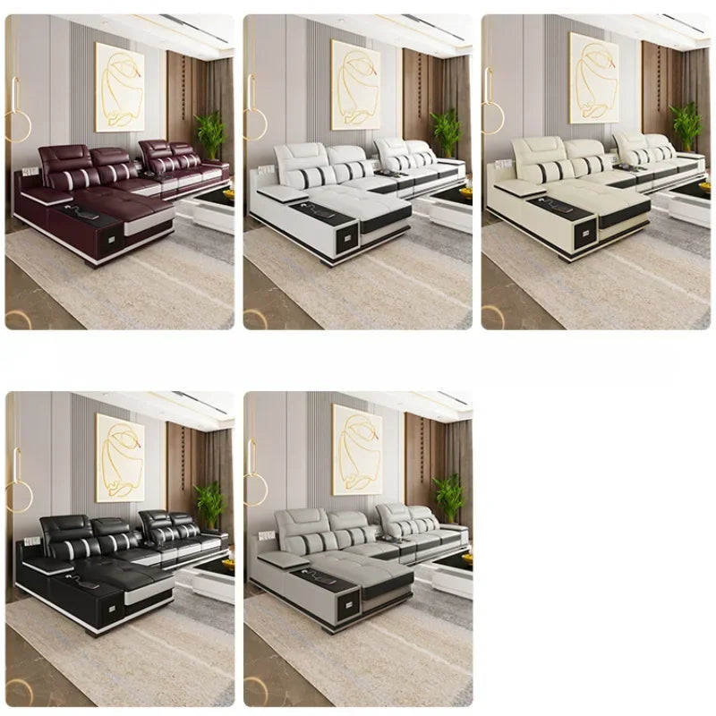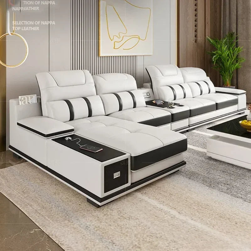 Experience the perfect blend of luxury and functionality with the Modern Leather Sofa, featuring Italian design elegance combined with cutting-edge technology. This sophisticated sofa brings a touch of modern style to your living space while integrating convenient features for enhanced comfort and connectivity.