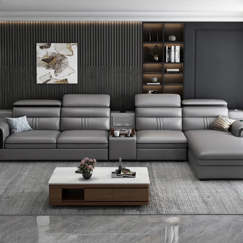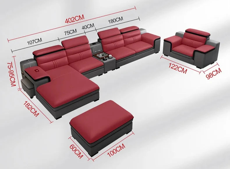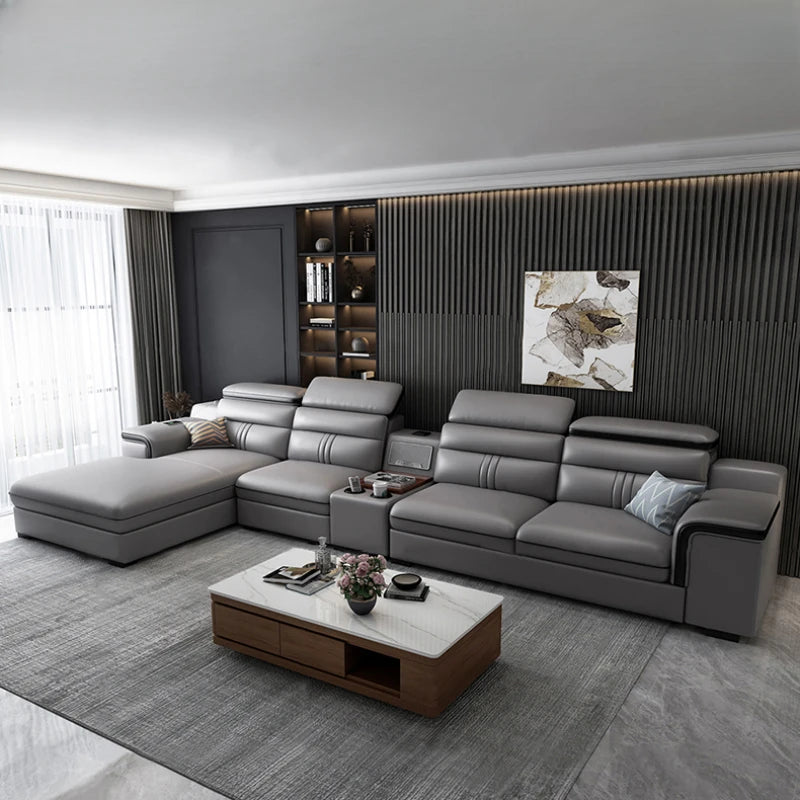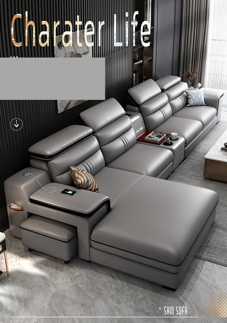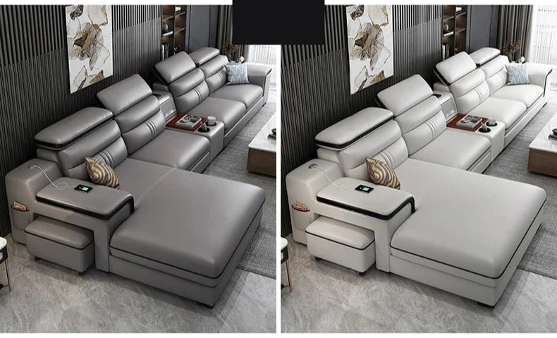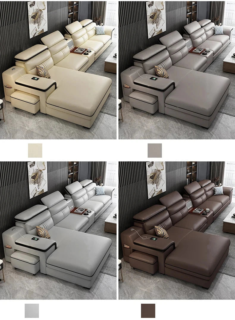 Elevate your living space with the Modern Genuine Leather Sofa, a cutting-edge piece of home furniture designed to combine luxury, technology, and comfort. This corner combination sofa features wireless charging and smart audio integration, making it the perfect centerpiece for any contemporary living room.