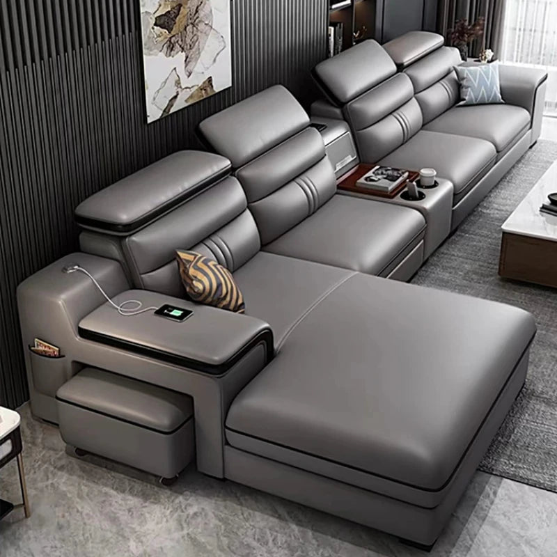 Modern Leather Sofa Wireless Charging Smart Audio Living Room Corner Combination
