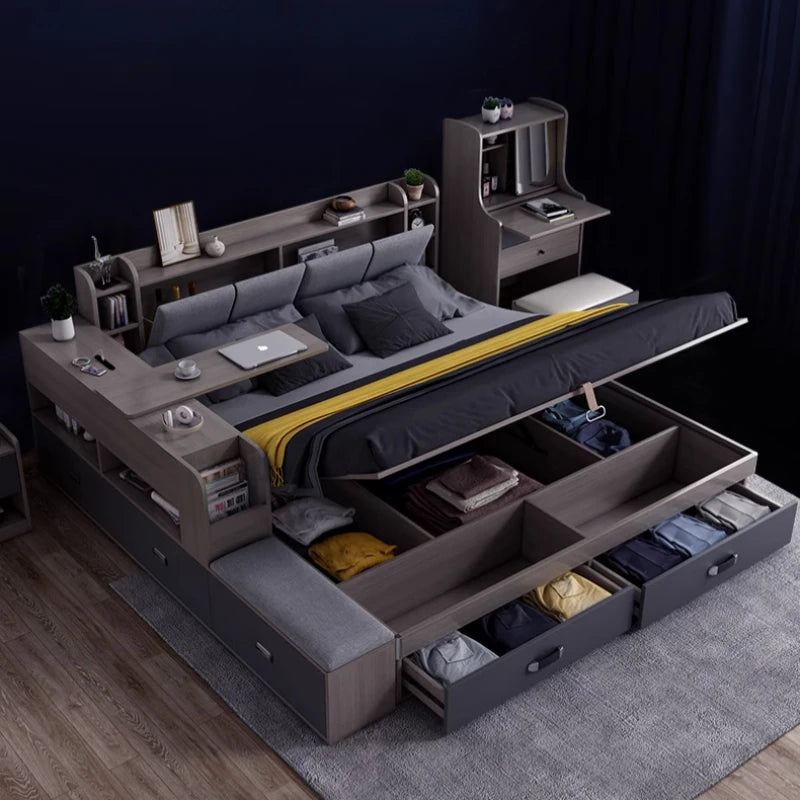 Nordic Modern Double Bed - Simple Storage, Small Apartment