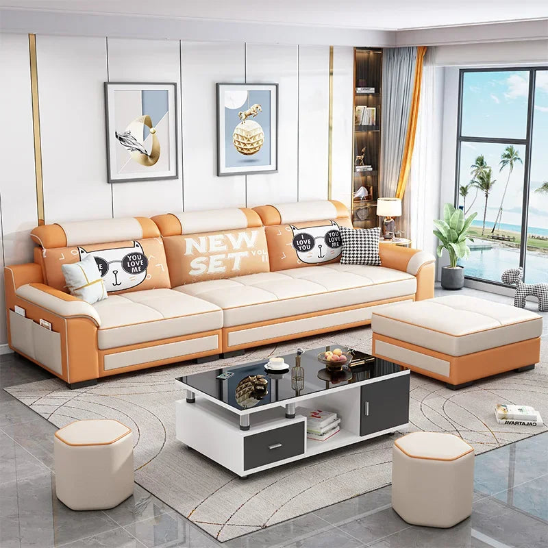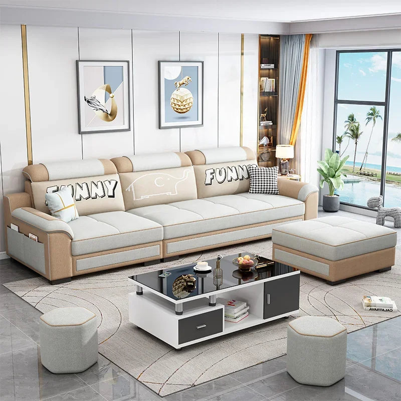 Nordic Large Sectional Couch - Modern Ergonomic Sofa & Pouf