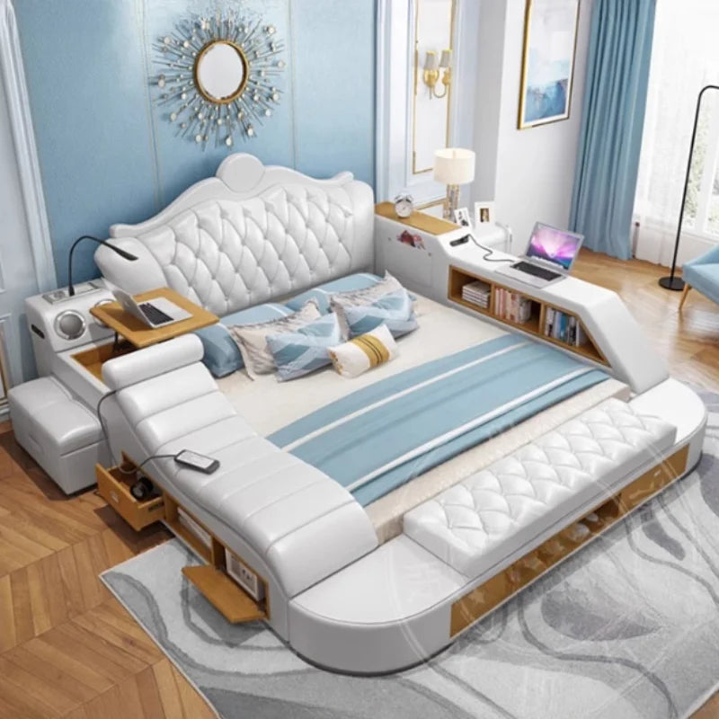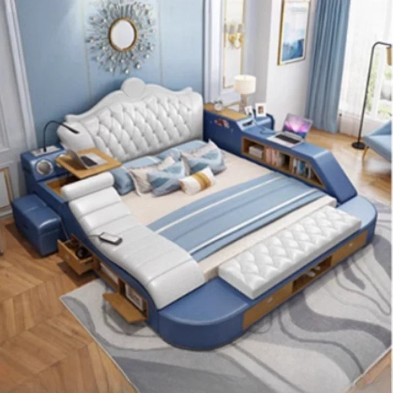 Enhance your bedroom with the Unique Wooden King Size Double Bed, combining Nordic charm with modern elegance. This luxurious bed frame is designed to elevate your living space while providing exceptional comfort and functionality. Its striking design features and high-quality craftsmanship make it a centerpiece in any bedroom.