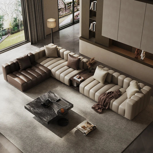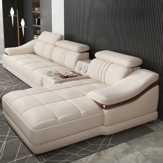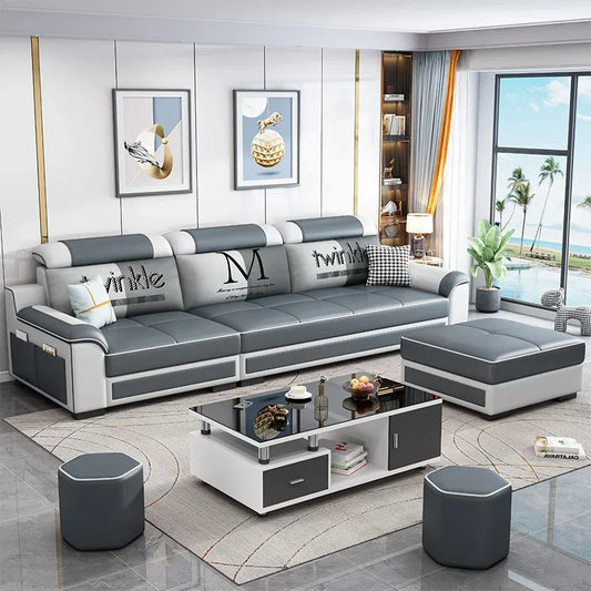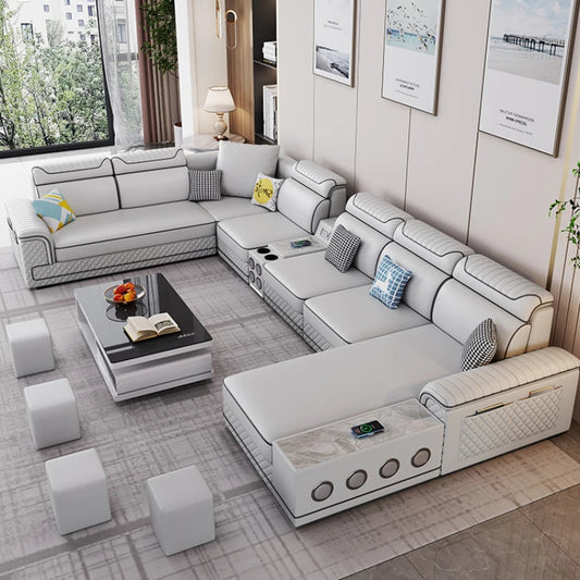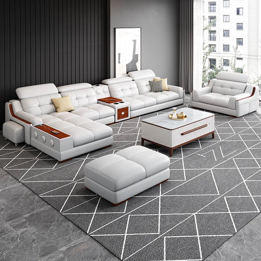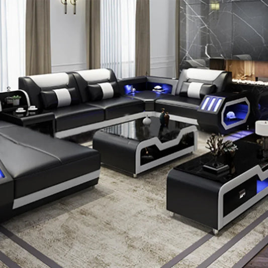 Modern Luxury Leather Sectional Sofa Set - Smart LED Living Room Couch