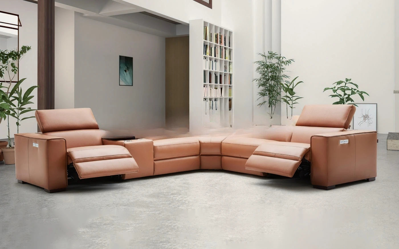 Experience the ultimate in comfort and luxury with the Electric Dual Motor Recliners, a premium power reclining sofa crafted from genuine leather. Designed for modern living spaces, this sectional couch combines advanced technology with high-end materials to create the perfect theater seating for your home.