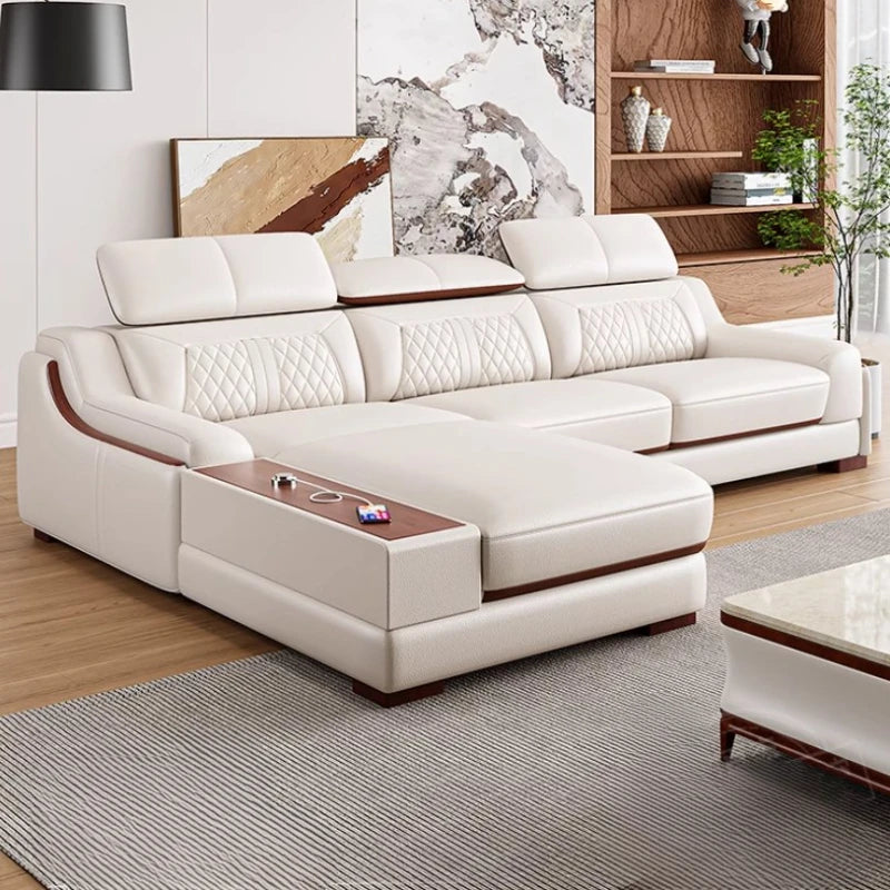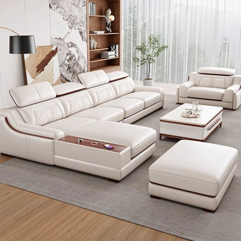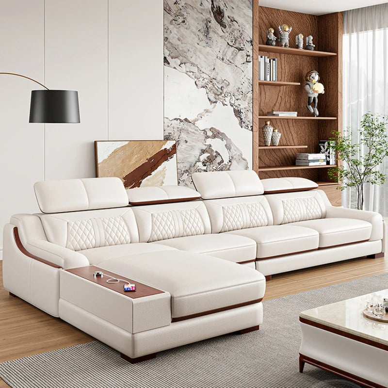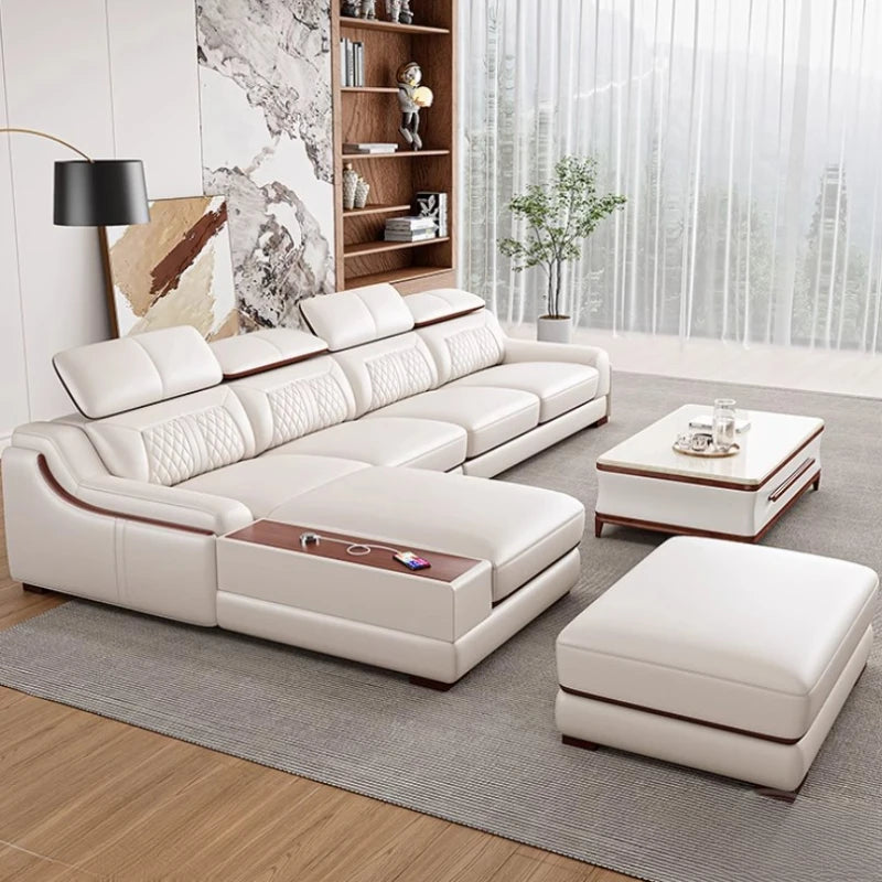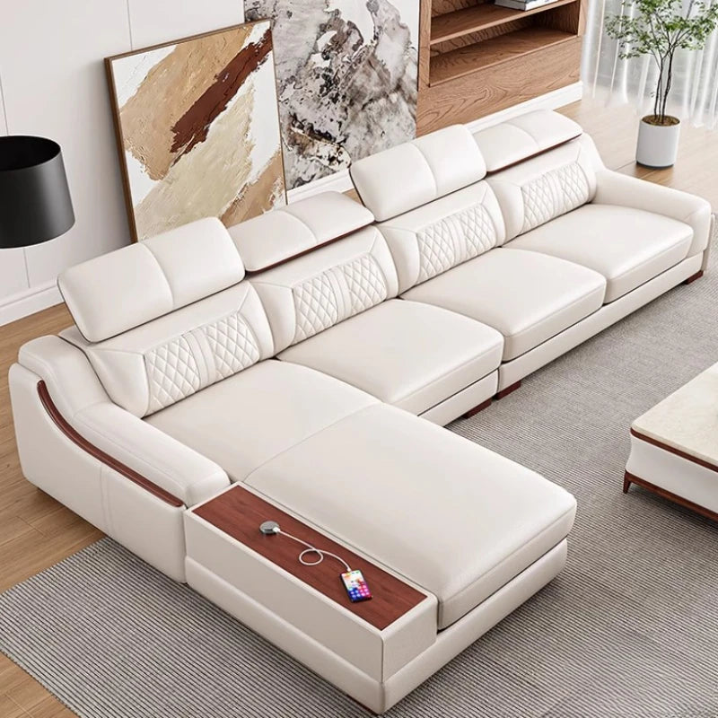 Elevate your living space with the Genuine Leather Modern Reclining Sofa, a stylish and luxurious addition designed with a white Nordic lounge aesthetic. This sofa combines high-quality genuine leather with modern features for ultimate comfort and sophistication.