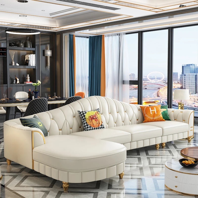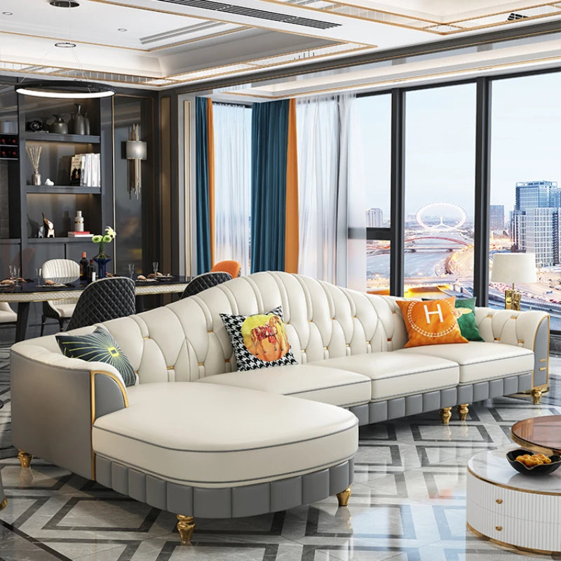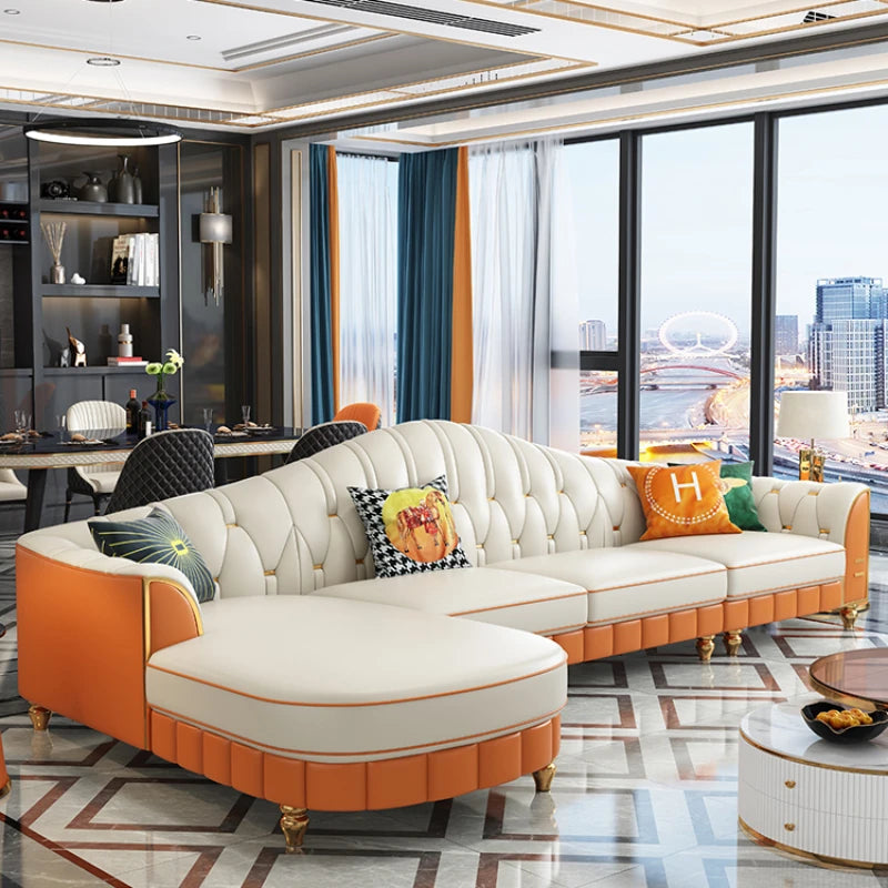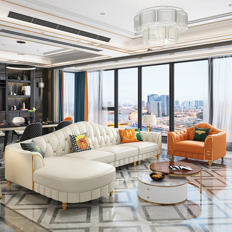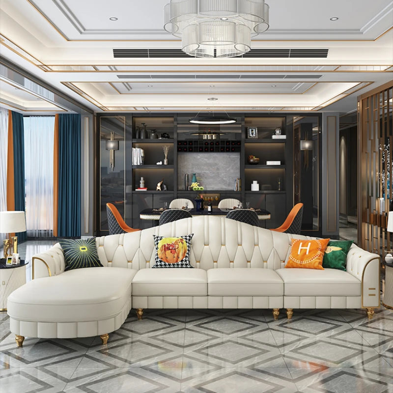 This Luxury Modern Fancy Sofa brings a blend of opulence and comfort to any space, making it a perfect addition to your living room for relaxation and style.