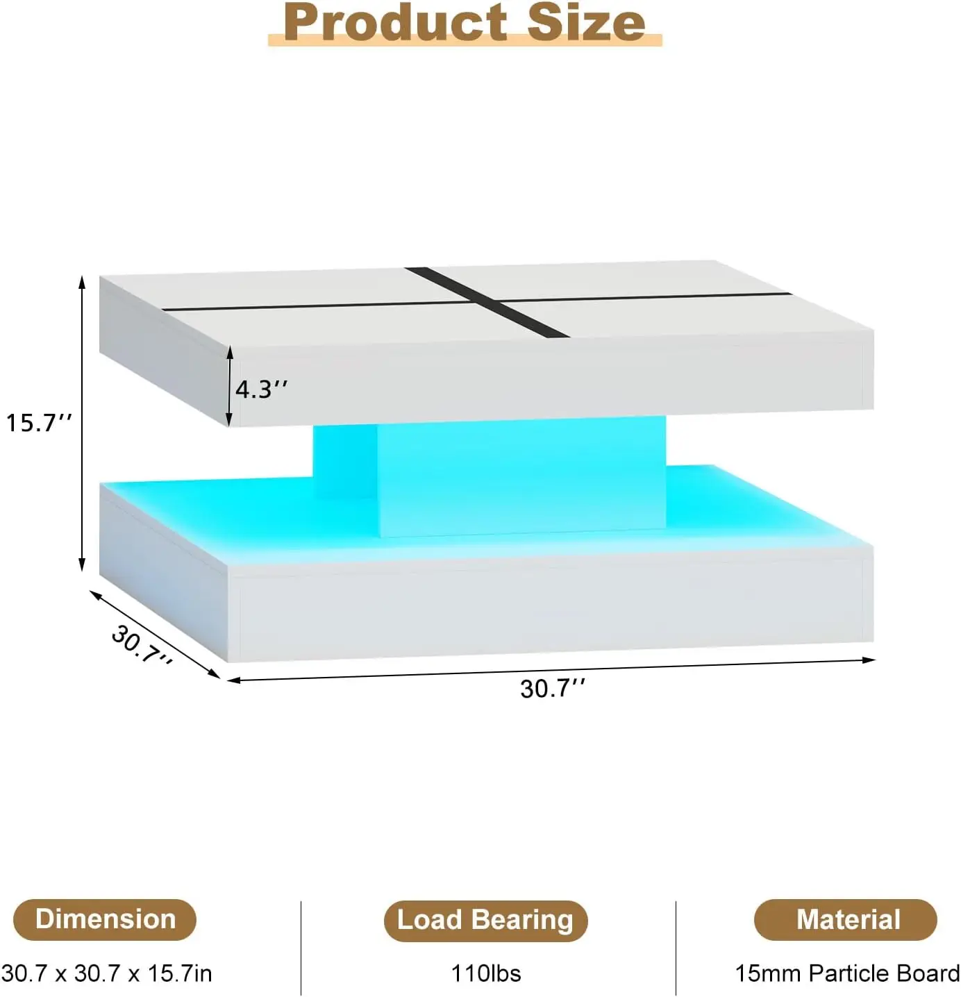Integrated LED Lighting: Equipped with built-in LED lights, the table offers customizable illumination to set the perfect mood. The LED lighting can be adjusted for brightness and color, enhancing the ambiance of your living room.