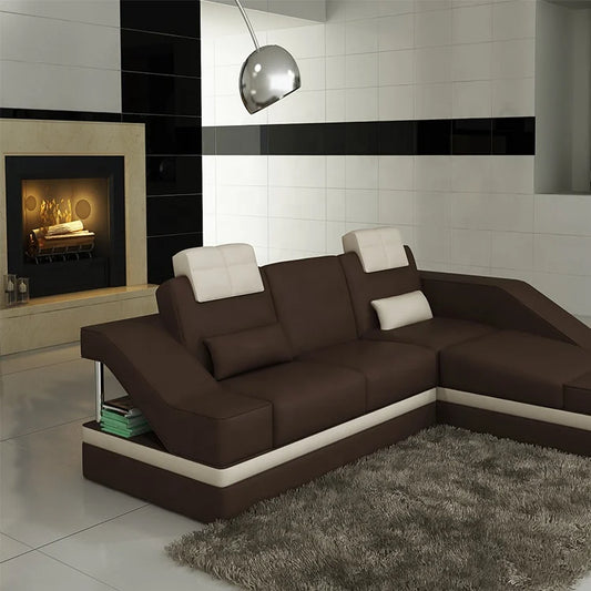 Modern L-Shape Genuine Leather Modular Corner Sofa with LED Lights