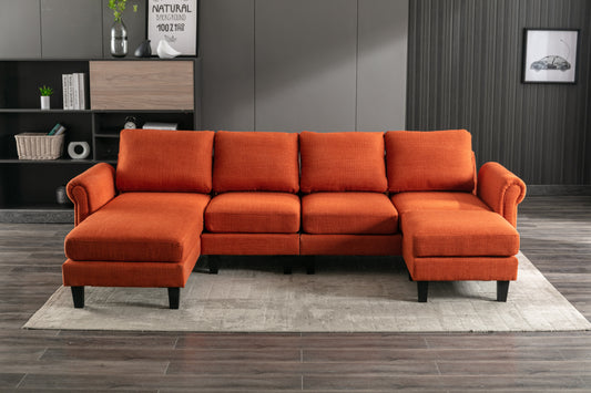 User Modern Citrus Sectional: Reversible Chaise, Sofa, Ottoman, Tufted