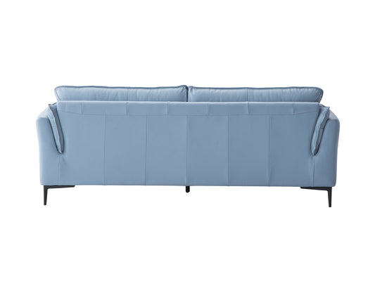 Ethereal Essence Light Blue Top Grain Leather Sofa, Black Finish