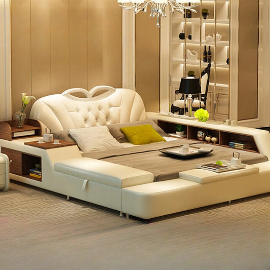 Leather Storage Double Bed - King Size, Nordic Frame, Multifunctional