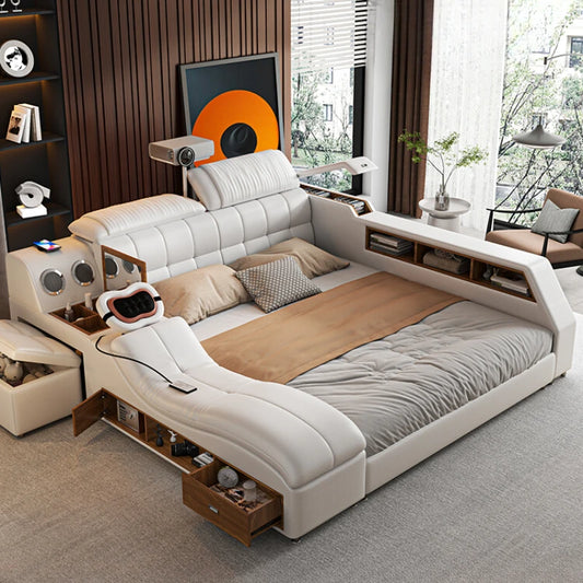 Post-Modern Genuine Leather Bed - Soft, King/Queen, Storage