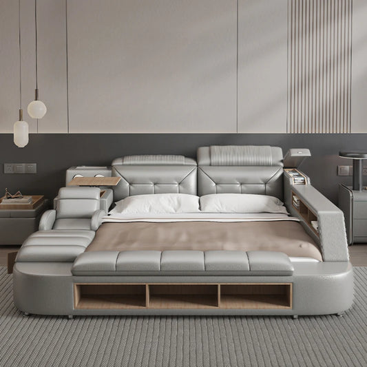 Luxury King Size Leather Bed - Multifunctional Tech Smart Bed