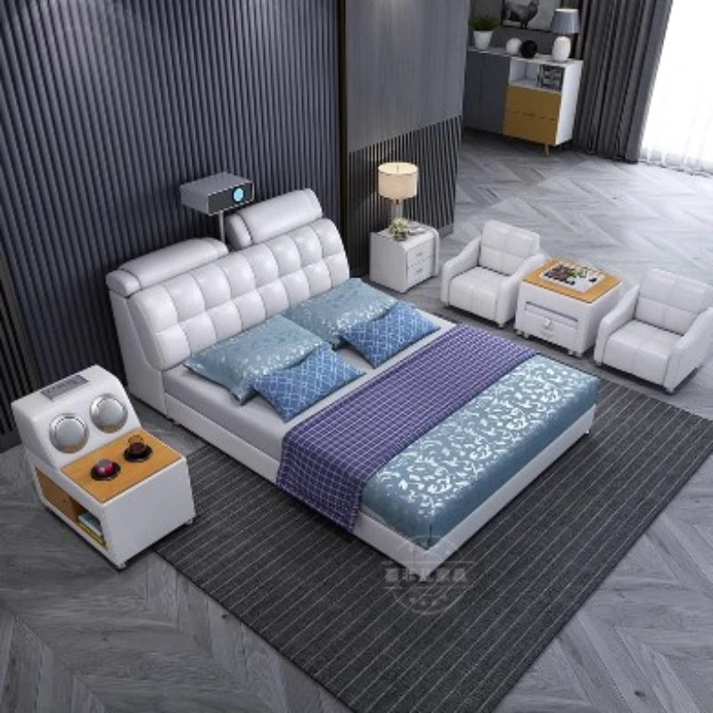 Luxury Headboard Smart Bed - King Size, Nordic Frame, Multifunctional