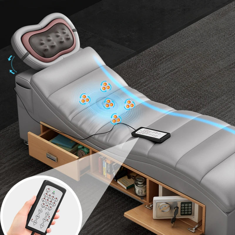 Crafted with premium genuine leather, the bed exudes elegance and provides a sumptuous feel. It integrates smart technology, including a built-in massage function, USB charging ports, and a Bluetooth audio system, delivering unparalleled convenience and relaxation. The massage function helps you unwind and de-stress, while the USB ports and Bluetooth audio keep you connected and entertained.