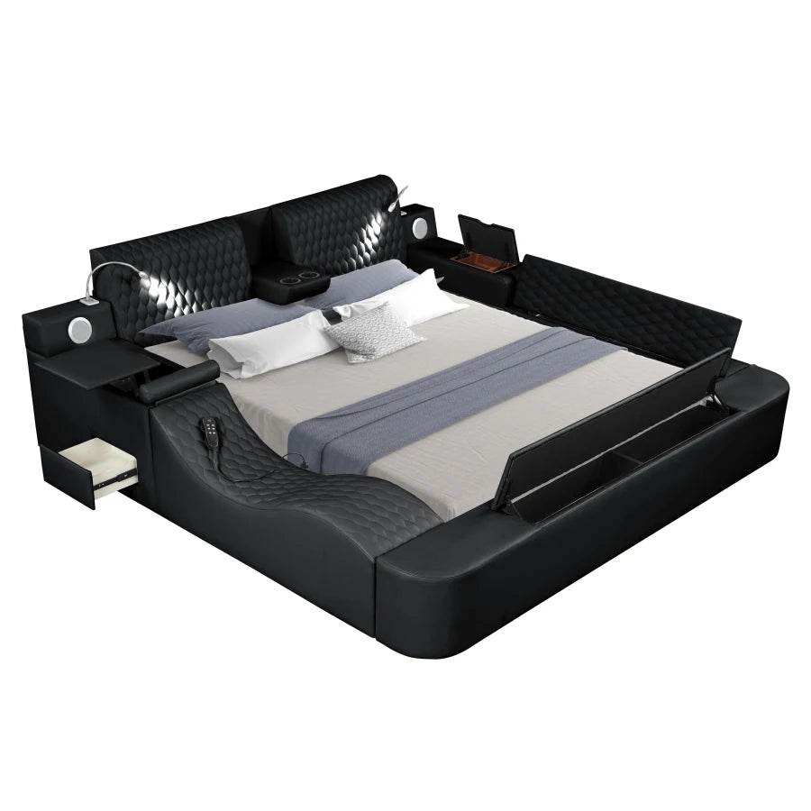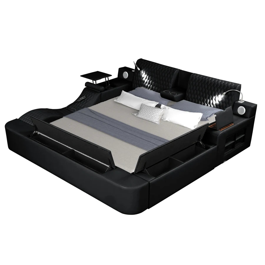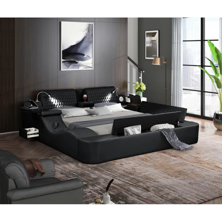Perfect for modern homes where space and elegance are essential, the King Size Multifunctional Black Wood Bed combines luxury with practicality, making it a standout addition to any bedroom.