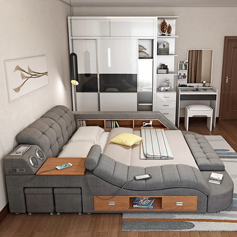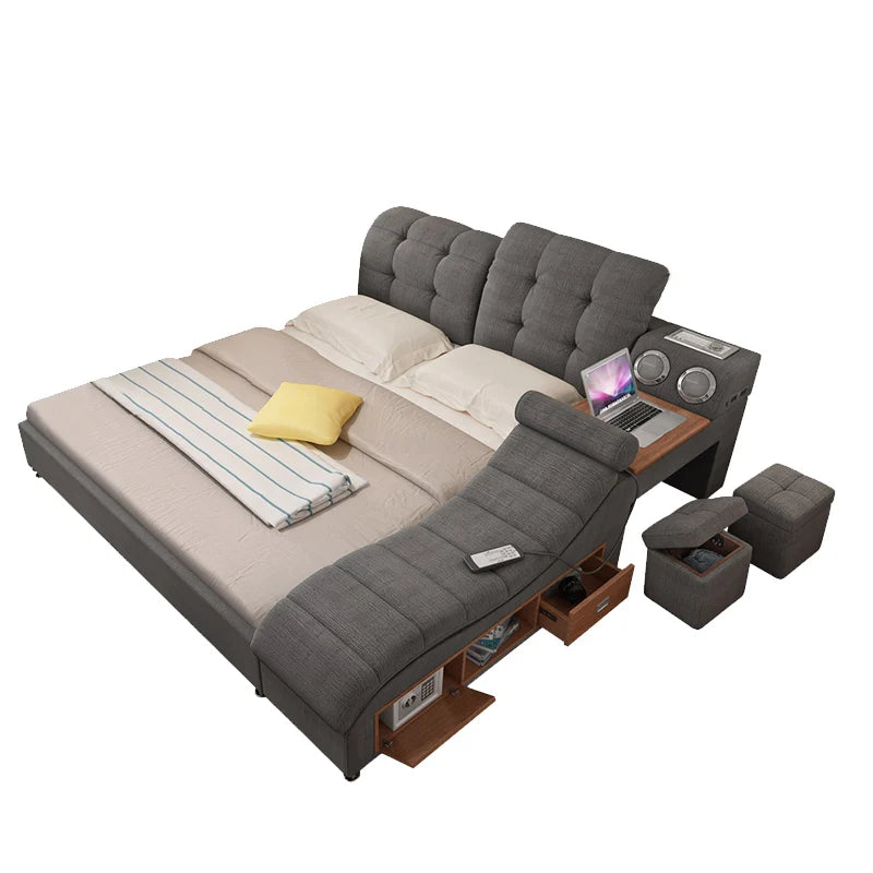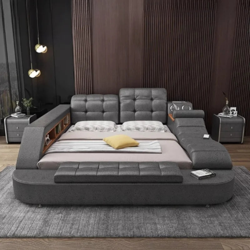 The integrated drawers offer convenient storage solutions, helping you keep your bedroom organized and free from clutter. The bed’s multifunctional features make it not only a luxurious centerpiece but also a practical addition to your space. Whether you're redesigning your bedroom or seeking a blend of style and functionality, this bed provides the perfect balance.