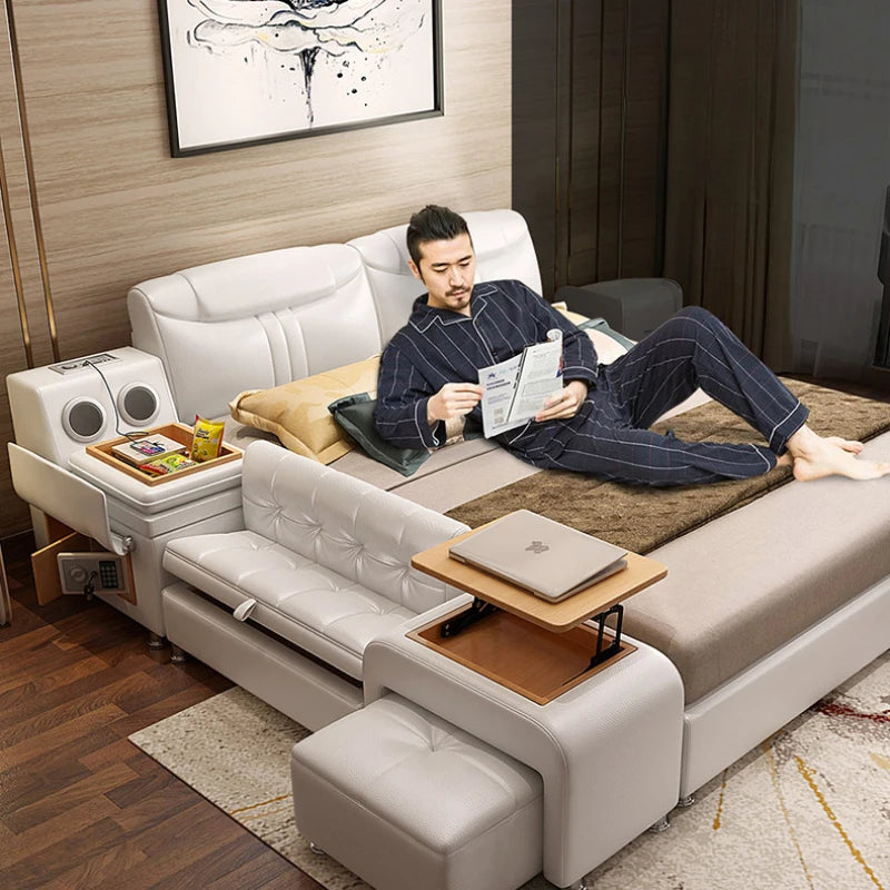 Elegant King Size Bed with Storage - Loft Leather, Luxury